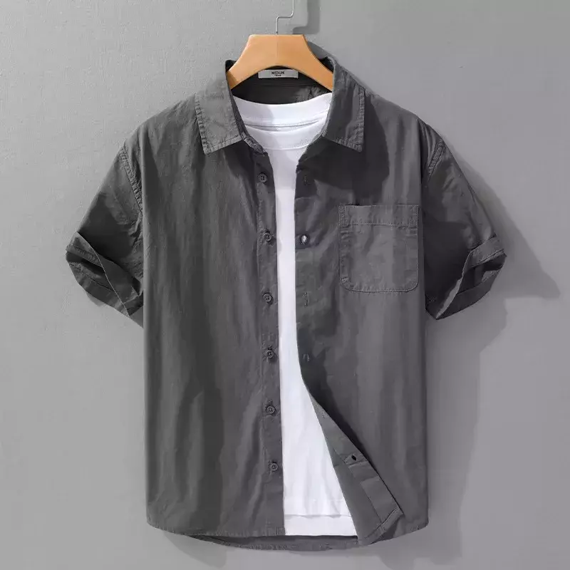 Se prepare para arrasar no estilo neste verão com nossa coleção de Verão Novo Casual Puro Algodão Fino Manga Curta Camisas Roupas Masculinas. Disponível em uma variedade de cores da moda, incluindo branco, cinza claro, cinza escuro, cáqui, lago azul, azul céu e feijão verde, essas camisas são perfeitas para diversas ocasiões, seja um passeio descontraído ou uma saída com os amigos.
