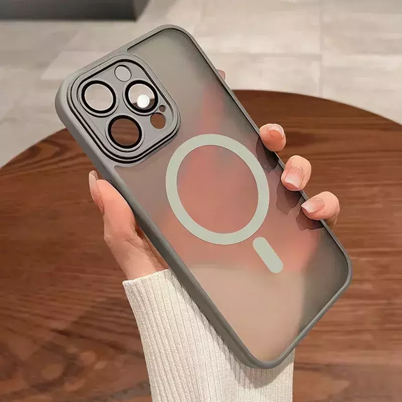 A capa de luxo magnético fosca translúcida é projetada para manter a elegância e a leveza do seu iPhone. Com um design fino e leve, ela se encaixa perfeitamente no seu dispositivo sem adicionar volume desnecessário, garantindo proteção eficiente sem comprometer a praticidade de uso no dia a dia.
