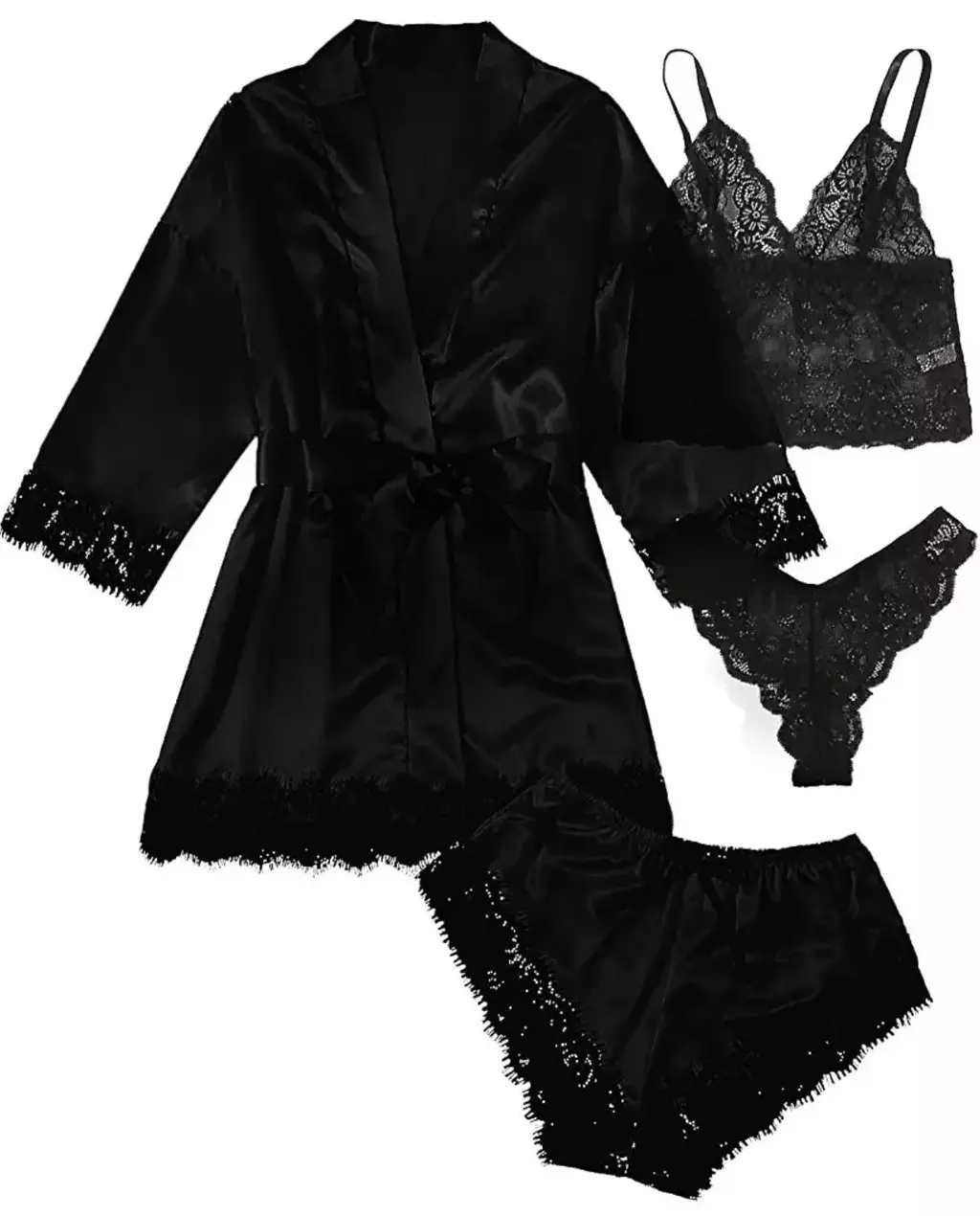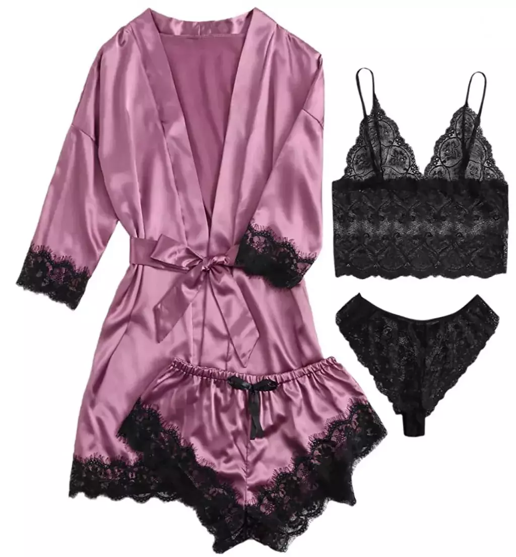 Confeccionado com tecido de cetim falso de alta qualidade, este conjunto de pijama oferece o máximo conforto e durabilidade. Além disso, a delicada renda presente na parte superior adiciona um toque de charme e elegância, elevando o design deste pijama a um nível superior. Sinta-se mimada todas as noites com este pijama luxuoso e desfrute de momentos de descanso revigorantes com muito estilo e sofisticação.💖😴