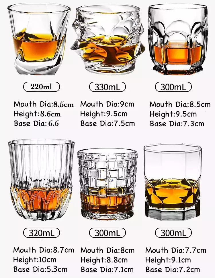?DURÁVEL - Lados resistentes e uma base pesada são praticamente inquebráveis, cada um pode conter 200ml-34ml do seu whisky favorito, não muito pequeno para cubos de gelo.
