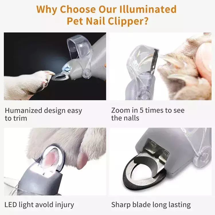 Agora, cortar as unhas do seu pet será mais simples do que nunca, graças à luz LED integrada que proporciona uma iluminação clara e brilhante da área de corte. Não importa se o seu pet tem unhas escuras ou claras, a luz LED garante que você veja exatamente onde está cortando, evitando erros e desconforto para o animal. Além disso, o mecanismo de segurança embutido evita cortes excessivos, garantindo a segurança e o conforto do seu pet durante todo o processo.