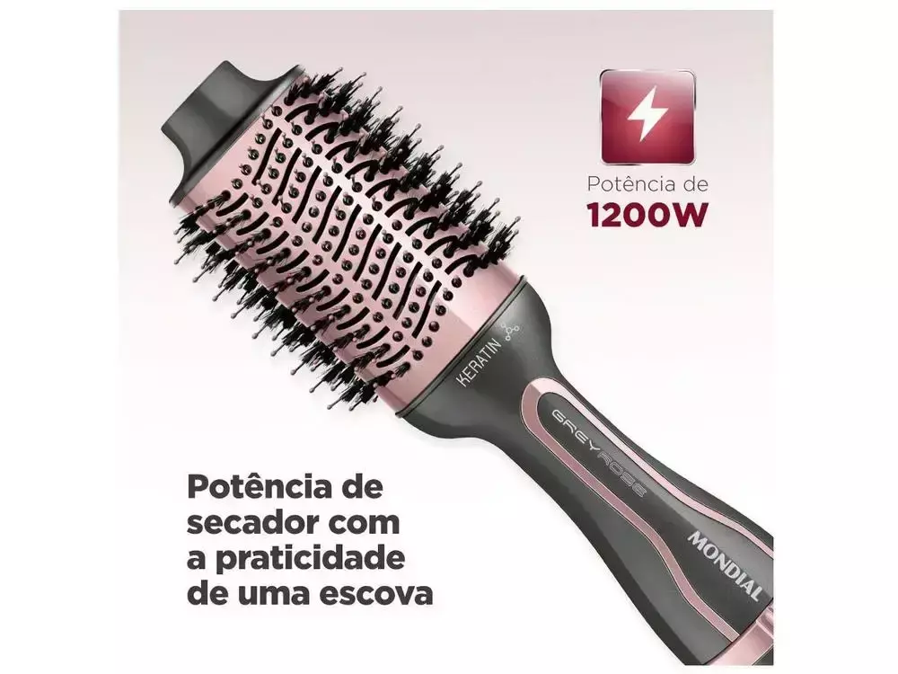 Você está em busca da ferramenta ideal para conquistar um cabelo impecável, brilhante e cheio de vida? Apresentamos a Escova Secadora Mondial Grey Rose Queratina - Bivolt, o seu novo aliado para obter um resultado de salão de beleza no conforto da sua casa. Com design elegante e tecnologia de ponta, essa escova secadora foi projetada para atender às necessidades dos mais exigentes consumidores.