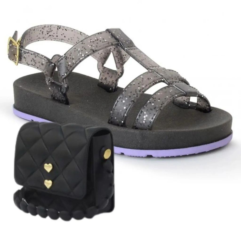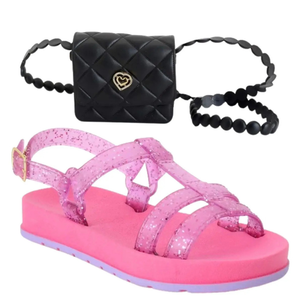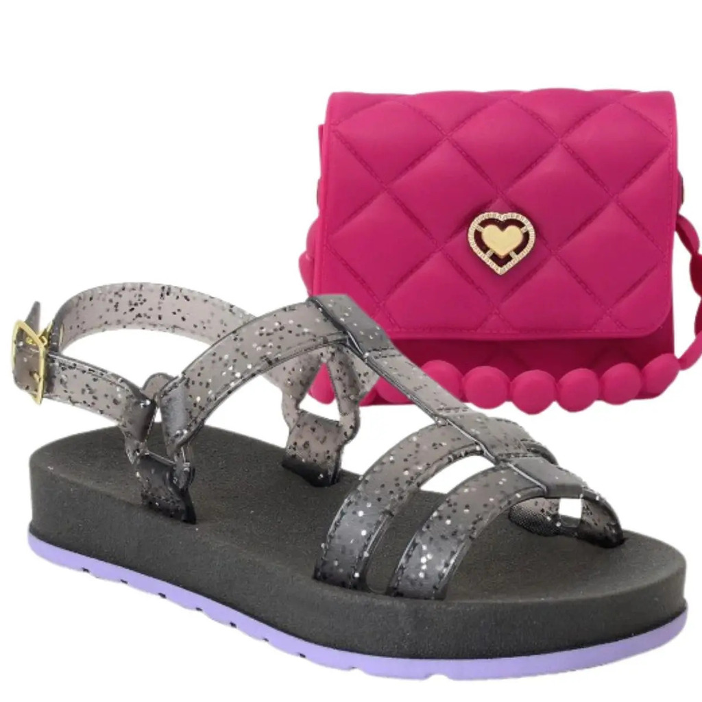 A sandália casual é a combinação perfeita entre estilo e conforto. Seu design brilhoso adiciona um toque de glamour a qualquer visual, enquanto a sua estrutura garante o apoio e conforto necessários para que as meninas possam aproveitar o dia todo sem preocupações. Além disso, a bolsa com detalhe de coração é ideal para carregar os itens essenciais com muito charme. 🌟